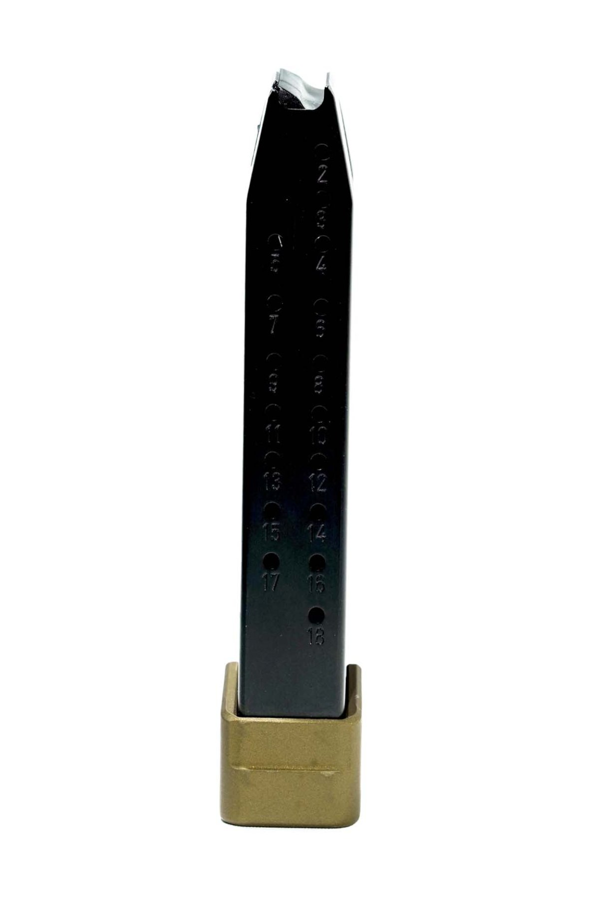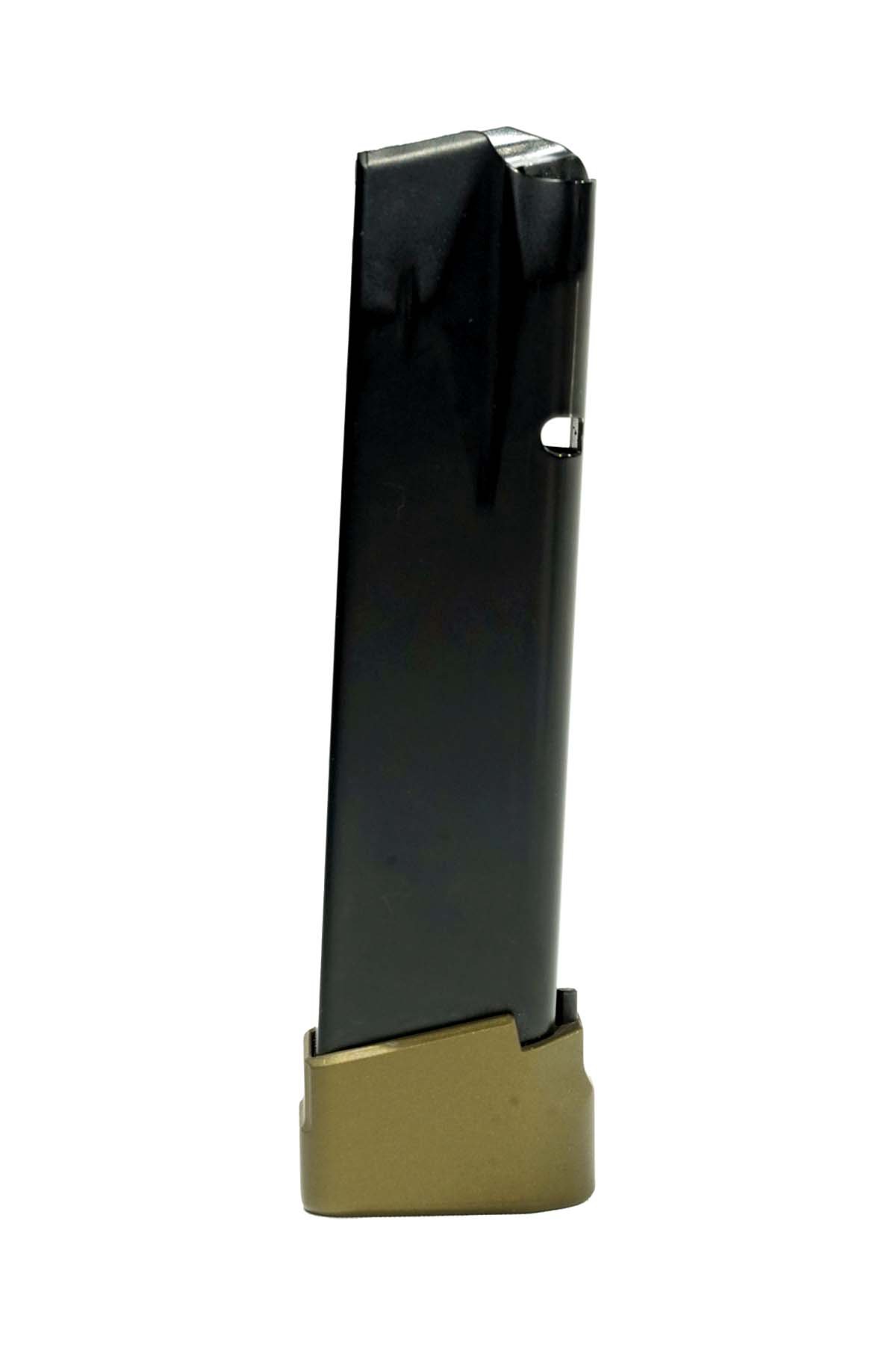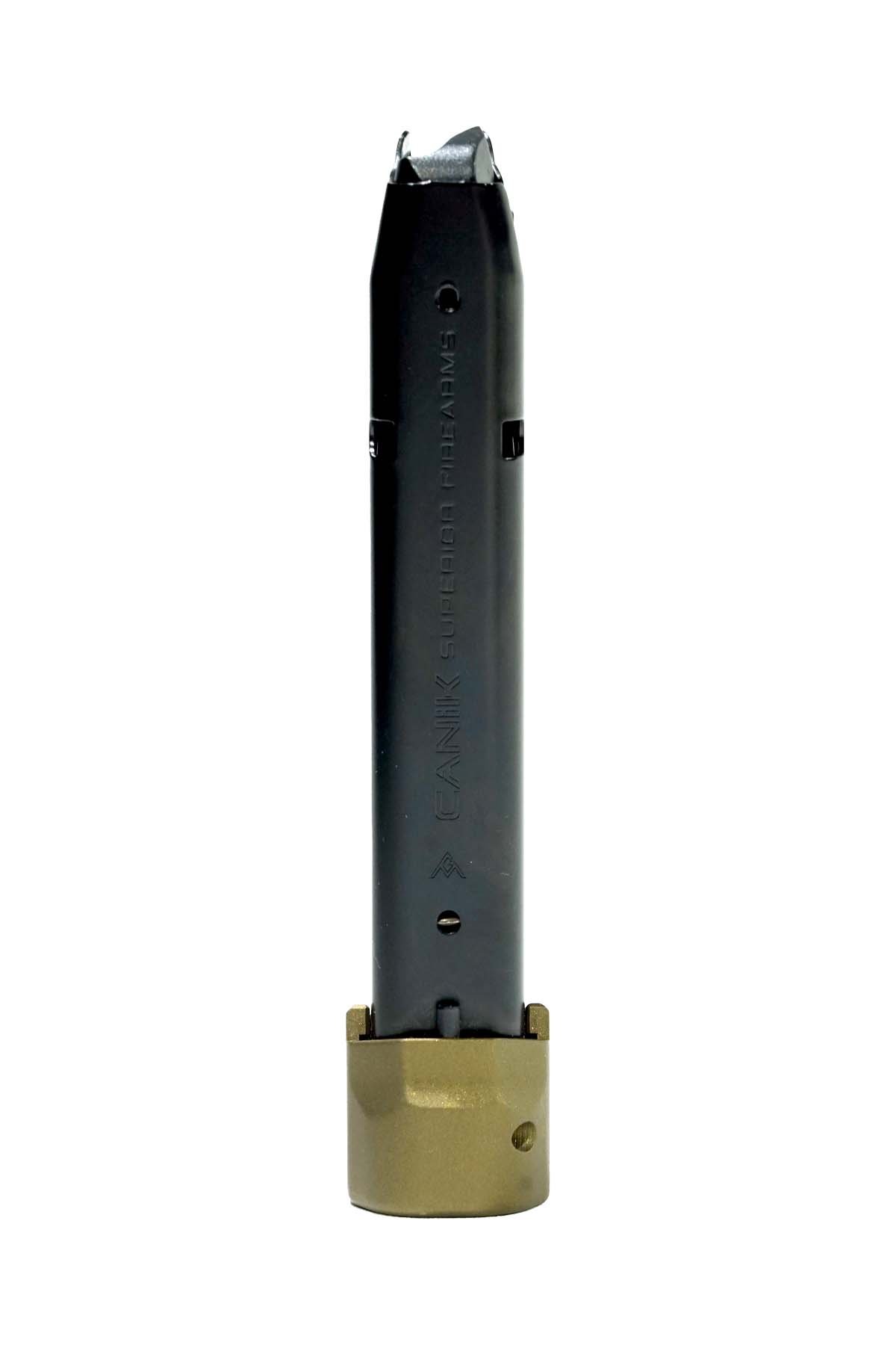 Canik Aluminium-Magazin, das von Taran Tactical Innovations entworfen wurde und perfekt zur Canik TTI Combat Pistole passt. Es besitzt eine bronzefarbene Cerakote-Beschichtung und eine +1 Magazinverlängerung. Hergestellt in einer hochpräzisen Produktionslinie unter Verwendung einer fortschrittlichen reibungsreduzierenden Beschichtung. Eine hochwertige Feder sorgt für eine zuverlässige Zuführung vom ersten bis zum letzten Schuss.