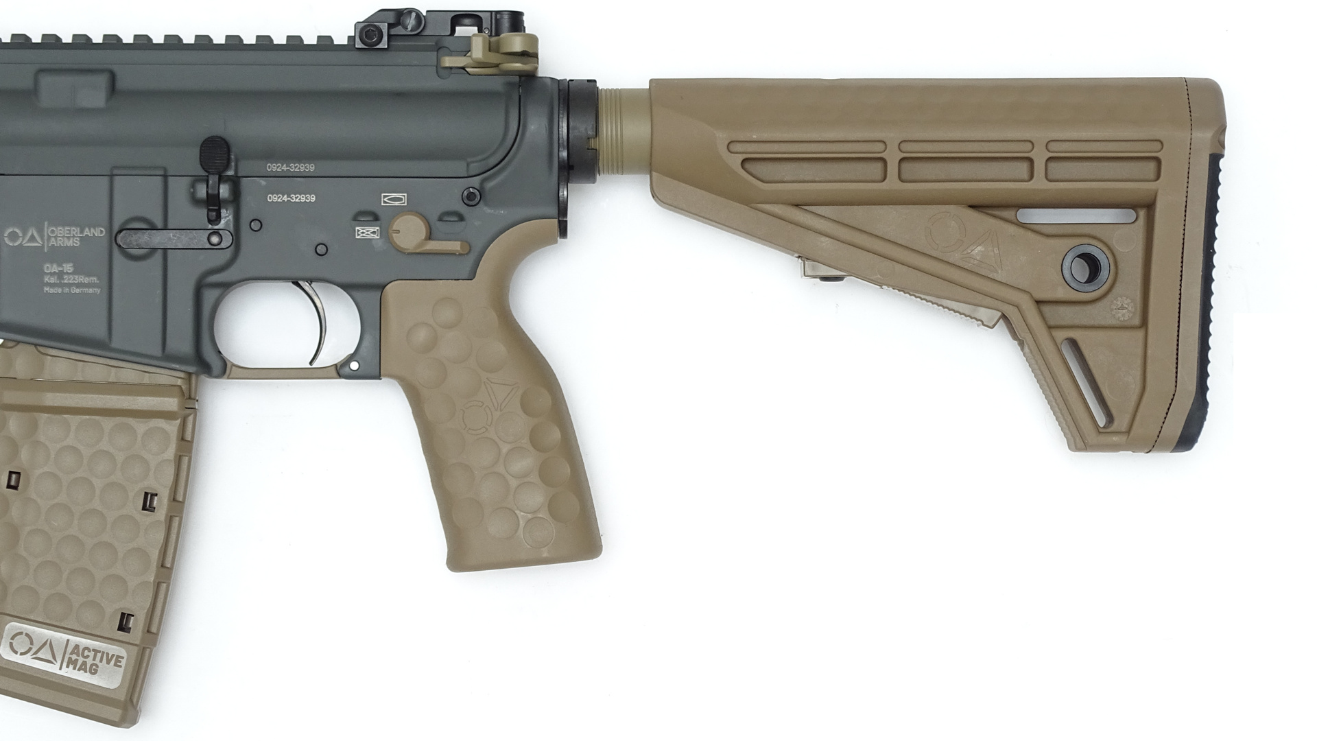 - Im Lieferumfang enthalten 2x OA Griffe new Generation 15° in Größe L und M. in Coyote