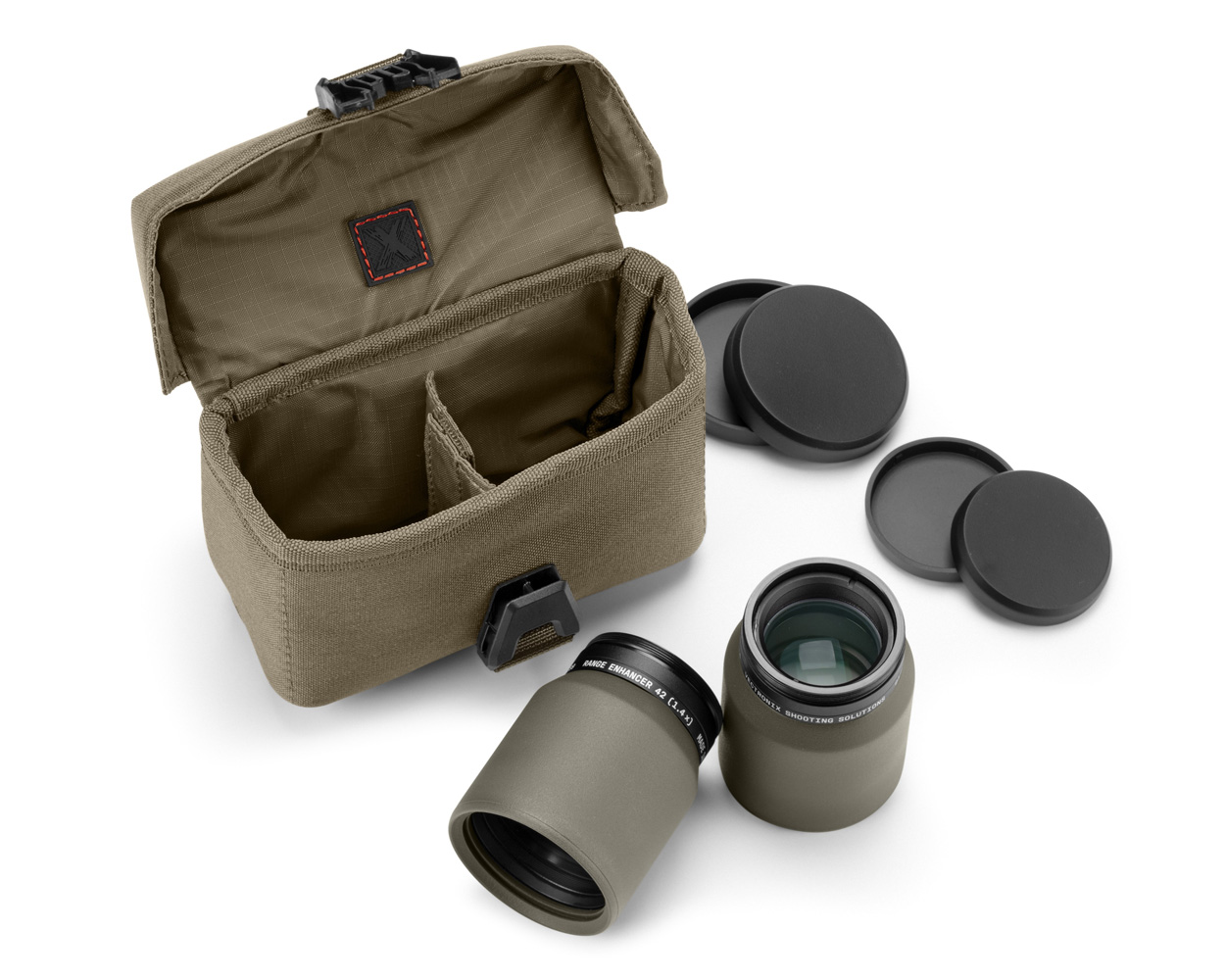 Um Langlebigkeit und Schutz zu gewährleisten, sind die Range Enhancer mit einer schützenden Gummierung ausgestattet. Darüber hinaus werden sie mit einem weichen Schutzetui für eine bequeme Aufbewahrung und einen sicheren Transport geliefert. Es ist erwähnenswert, dass die klappbaren Linsenschutzkappen Ihres VECTOR X auch mit den Range Enhancern verwendet werden können. Dadurch wird ein effektiver Schutz der Frontlinsen gewährleistet, um Kratzer und andere potenzielle Schäden zu vermeiden.