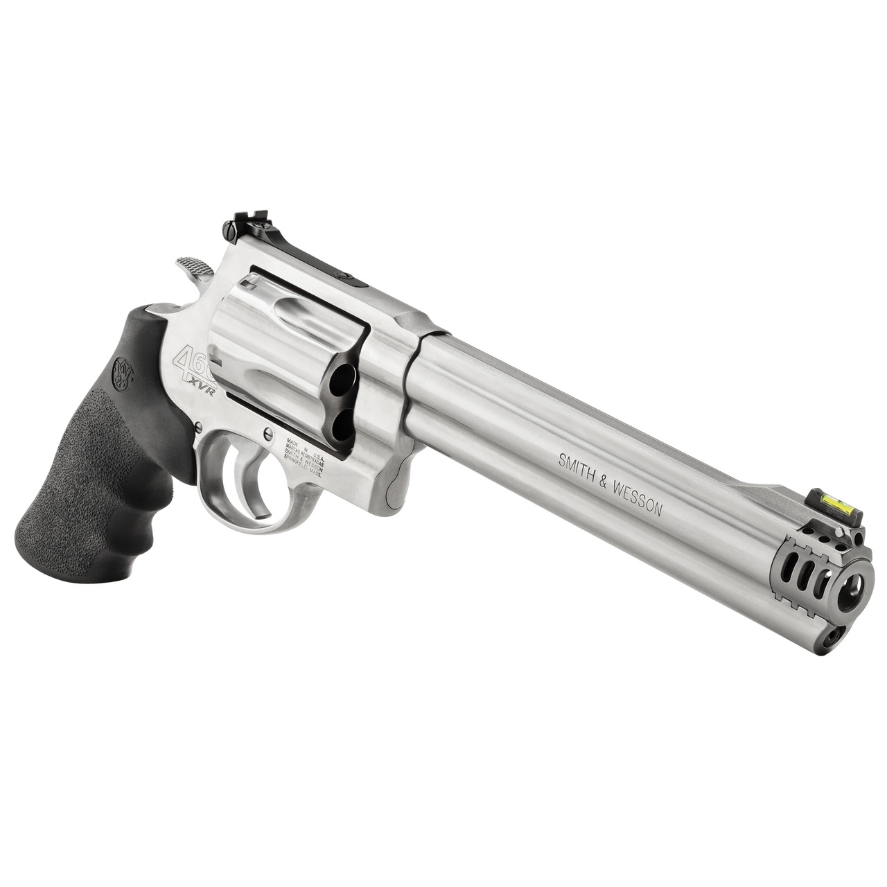 Das Modell 460XVR von Smith & Wesson weist die höchste Mündungsgeschwindigkeit aller Serienrevolver weltweit auf. Das Modell 460XVR ist so revolutionär, dass es eine völlig neue Bezeichnung benötigte ... XVR, X-treme Velocity Revolver. Ausgehend von einem Extra großen Rahmen arbeiteten die Ingenieure von Smith & Wesson daran, eine maximale Geschwindigkeit von über 2.300 Fuß pro Sekunde zu erreichen. Der 460XVR™ verfügt über austauschbare Kompensatoren, um jeder Ladung gerecht zu werden.