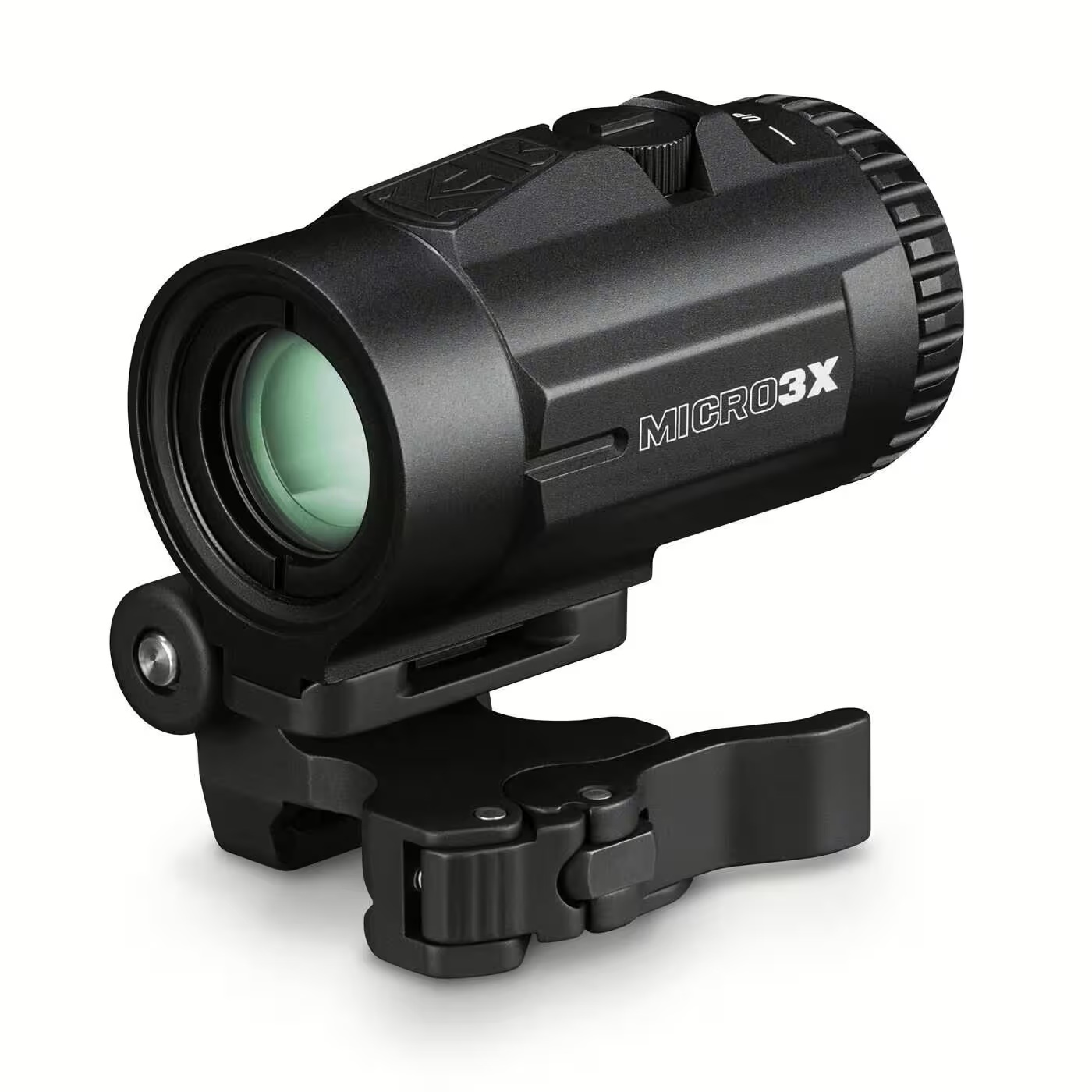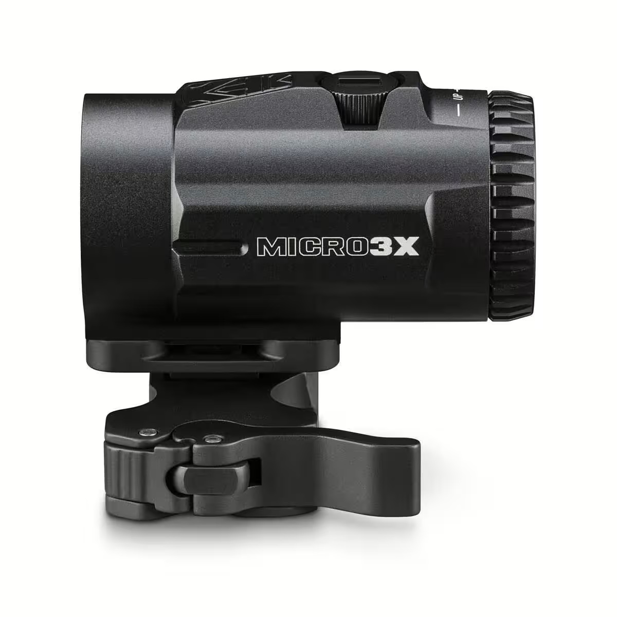 Der Vortex Micro 3x Magnifier bringt die 3-fache Vergrößerung auf die nächsten Stufe. Machen Sie Ihr Rotpunkt- oder Holovisier noch vielseitiger und flexibler mit einem ultrakompakten, leichten und optisch gestochen scharfen Magnifier. Nur 214 Gramm leicht und 7,3 cm lang. Der integrierte Schnellverschluss ermöglicht ein schnelles Anbringen / Abnehmen, während die Flip-Mount die Vergrößerung mit direktem Druck ein- und ausrastet.
