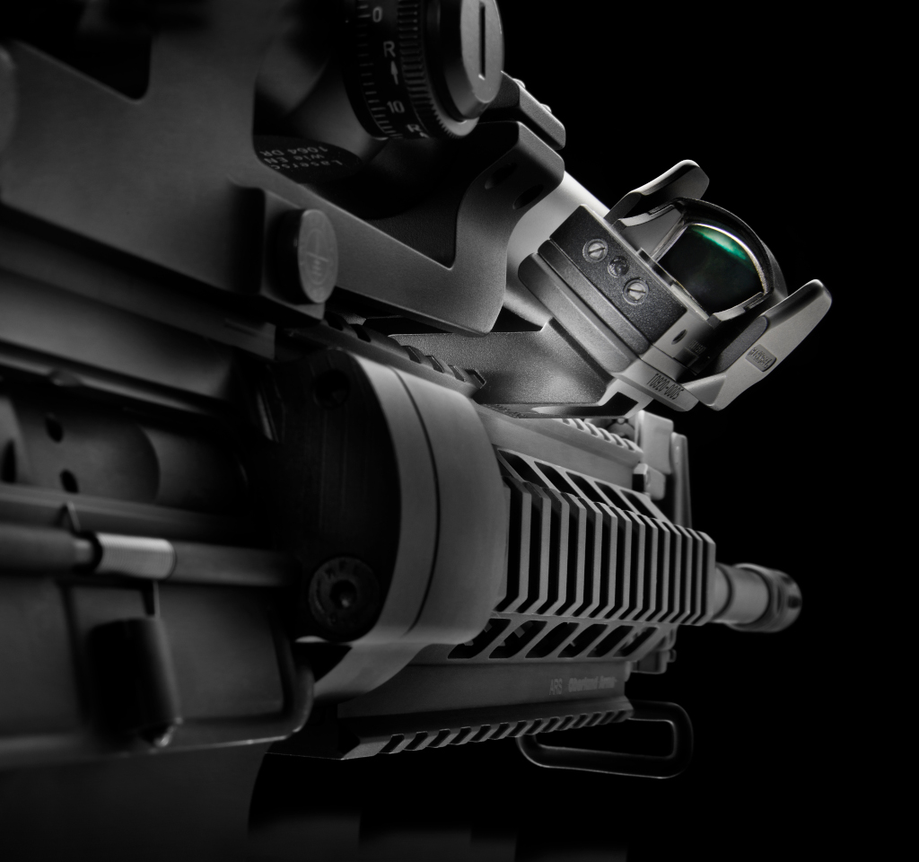 Die Offset-Montage ermöglicht das Anbringen von Rotpunktvisieren in der 45° Position und ist mit allen Spacern und Aufsätzen mit Universal-Schnittstelle kombinierbar.