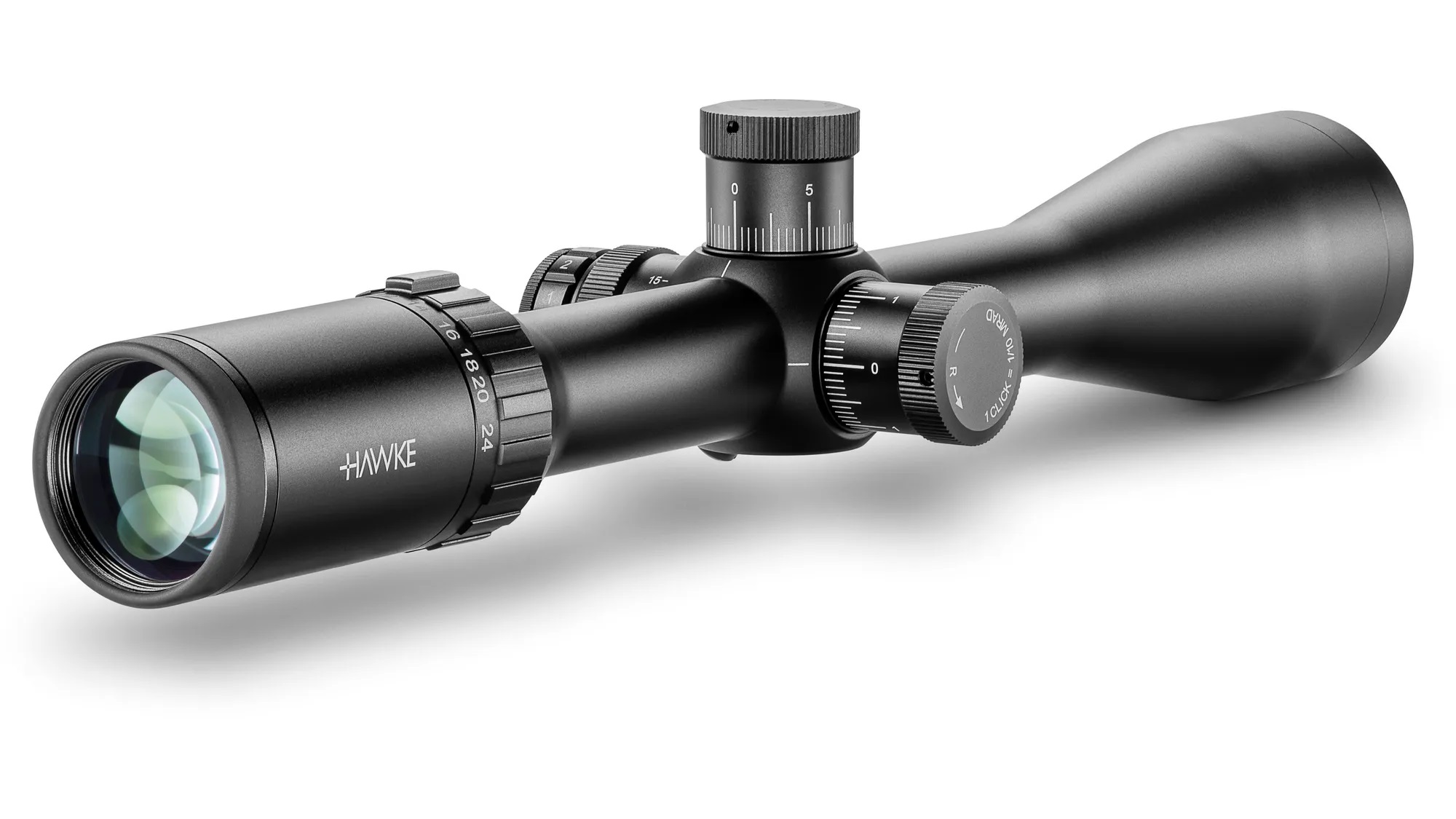 Hawke Vantage 30 WA SF 6-24x50 mit Half Mil Dot IR Absehen. Alle Vantage Zielfernrohre verfügen über das neue H2 Optiksystem und sind in einer Vielzahl an Konfigurationen erhältlich. Modelle mit der IR Bezeichnung zeichnen sich durch die rote und grüne Beleuchtung des präzise geätzten Absehens mit mehrstufiger Helligkeitsregelung aus.