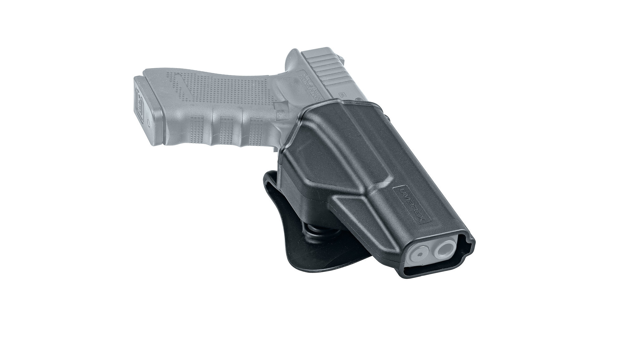 Umarex Polymer Paddle Holster Large, für Glock 17/19 etc., mit obenliegendem Entriegelungshebel für Daumenbedienung
