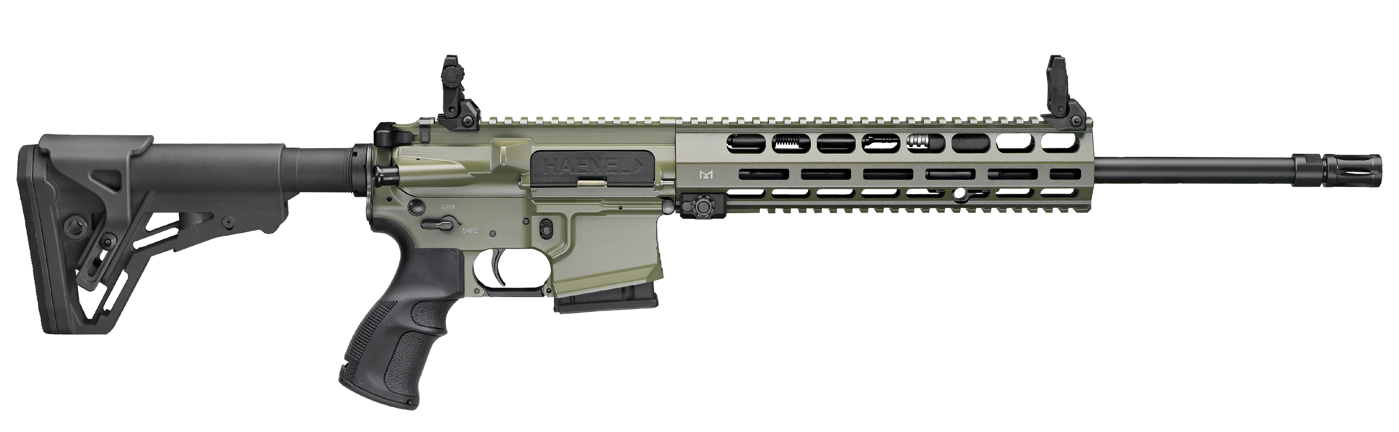 Mit der „Competition Rifle“ 223, kurz CR 223 knüpft die Waffenschmiede Haenel an Ihre lange Tradition in der Fertigung von halbautomatischen Büchsen an. Einst wurde bei C.G. Haenel in Suhl das erste Sturmgewehr der Geschichte gebaut und entwickelt. Es handelt sich bei der CR 223 um eine halbautomatische Büchse mit Pistonsystem im Kaliber .223 Rem. auf Basis des legendären AR 15 Systems. Als moderner Selbstlader in Zentralfeuer-Ausführung, funktioniert auch die Haenel CR 223 als Gasdrucklader mit Drehkopfverschluss. Der Teleskop-Hinterschaft ist in sechs Stufen längenverstellbar. Die Büchse verfügt über einen freischwingenden, kaltgehämmerten Lauf der in drei verschiedenen Lauflängen: 423 mm / 368 mm / 254 mm erhältlich ist. Je nach Lauflänge beträgt die Gesamtlänge zwischen 938 mm und 684 mm. Das Gewicht beträgt je nach Ausführung und Zubehör ca. zwischen 3,35 kg und 3,6 kg. Neben dem Direktabzug mit ca. 3.200 g ist auch ein optionaler Feinabzug erhältlich, dieser löst bei ca. 1.500 g aus. Die Sicherung ist beidseitig bedienbar.