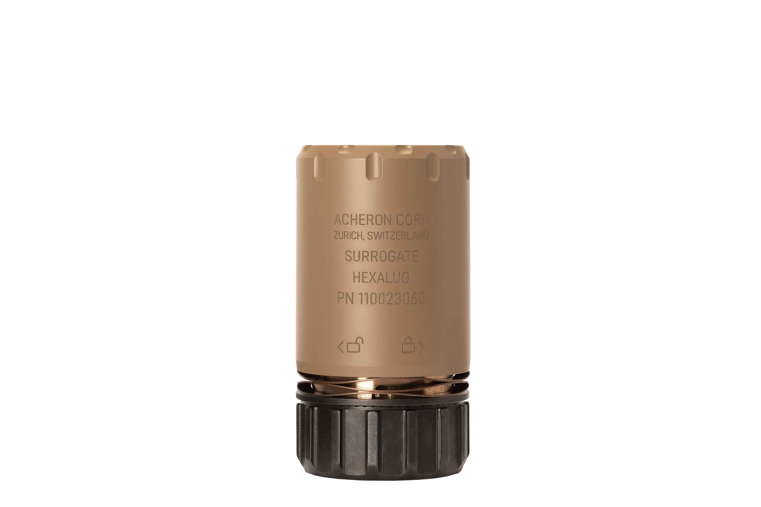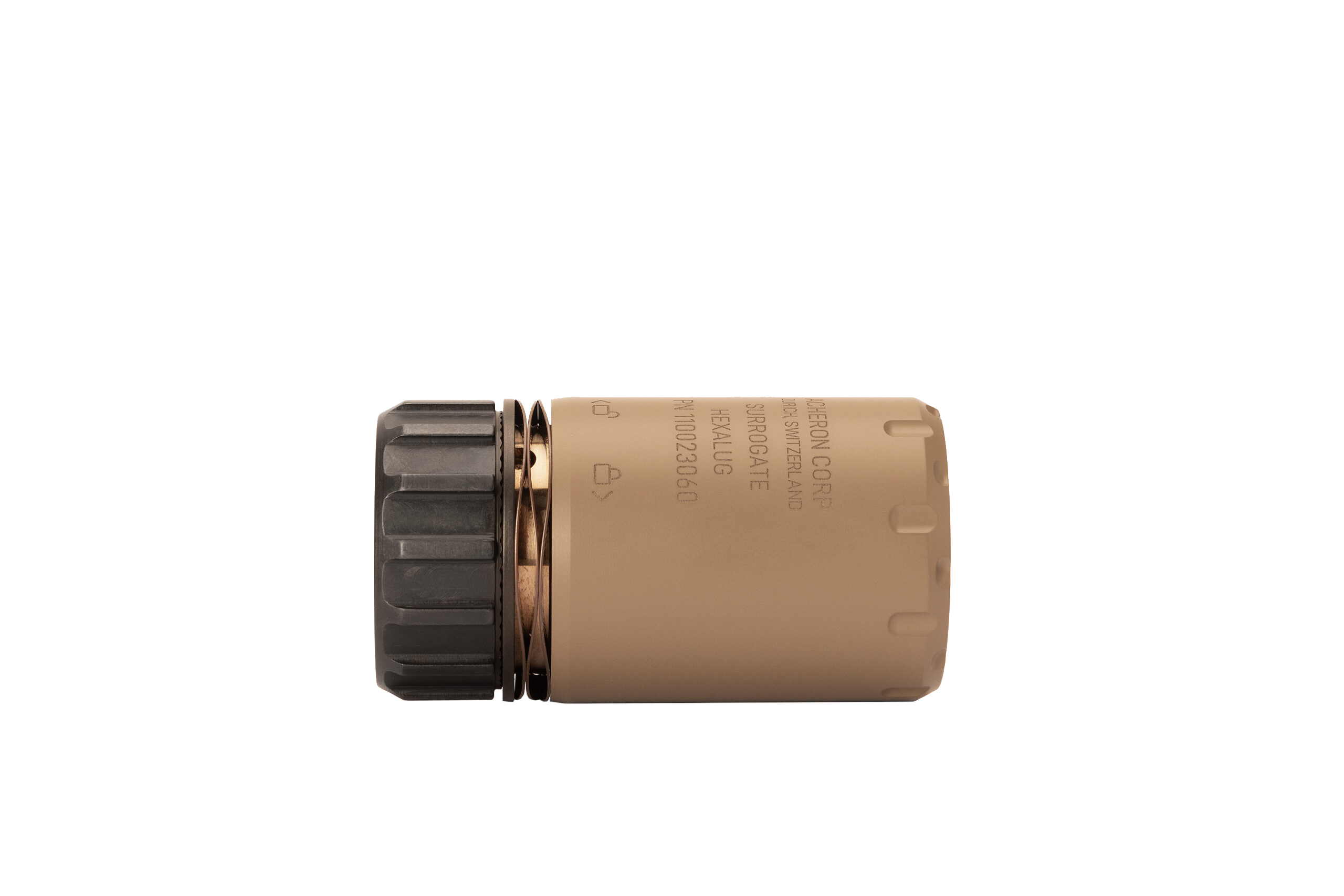 Die Befestigung auf dem Lauf erfolgt schnell und sicher mittels HexaLug Schnellmontagesystem. Der SURROGATE ist nicht kaliberspezifisch und passt auf sämtliche HexaLug Mündungsaufsätze. Nicht kompatibel mit HexaLug XL Mündungsaufsätzen.