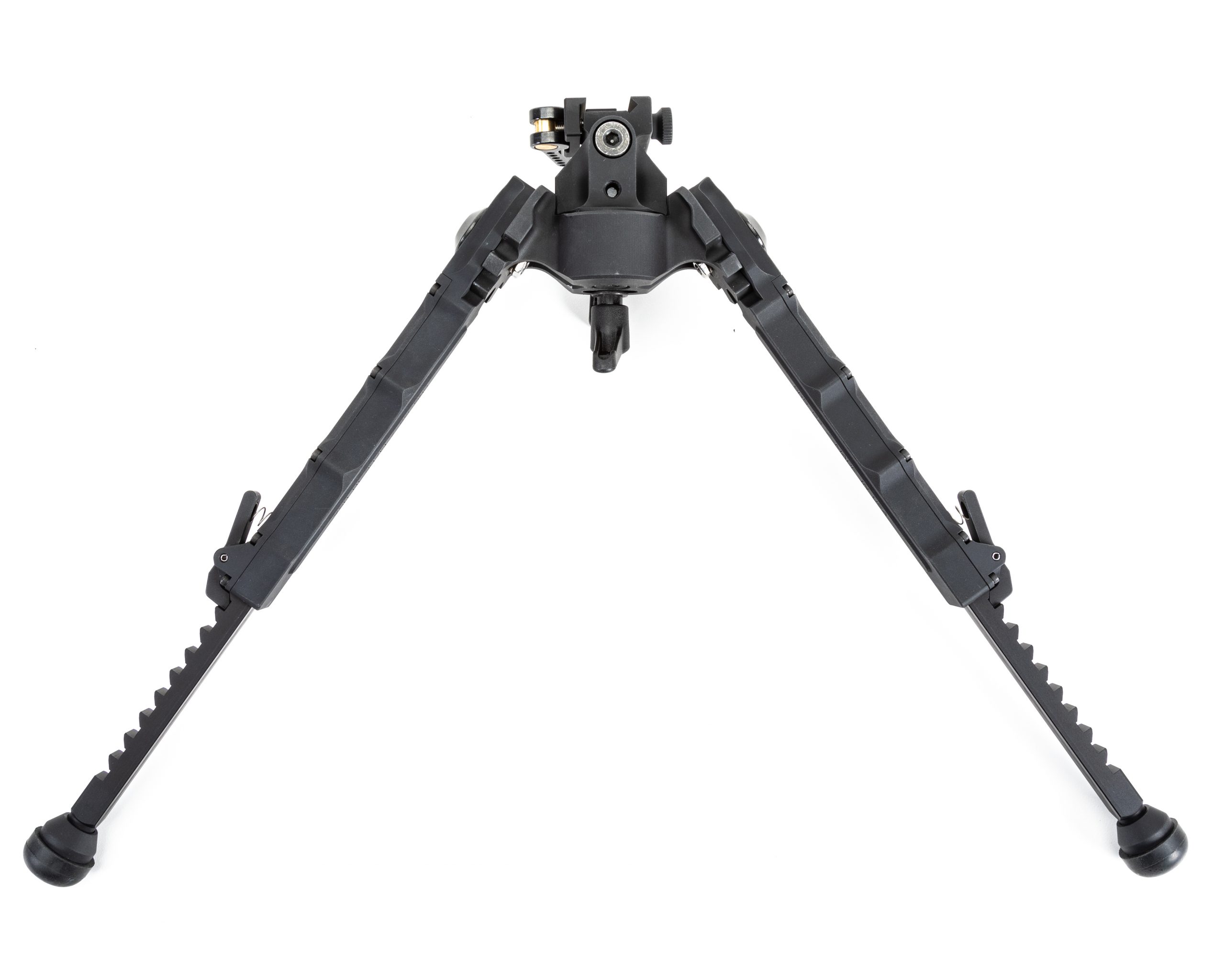 Das mit Rasten versehene Beindesign ermöglicht es dem Schützen, sich schnell auf 9 verschiedene Positionen einzustellen, mit dem Vorteil, dass jedes Bein anders positioniert werden kann. Zum Einstellen der Beinposition ziehen Sie einfach das Bein nach unten, um jedes Bein einzeln zu bewegen. Die Beinpositionen können in einer 45- oder 90-Grad-Position vorwärts oder rückwärts ausgefahren werden.