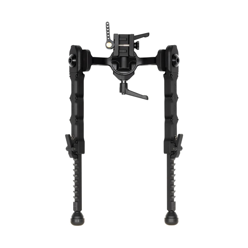 Das mit Rasten versehene Beindesign ermöglicht es dem Schützen, sich schnell auf 9 verschiedene Positionen einzustellen, mit dem Vorteil, dass jedes Bein anders positioniert werden kann. Zum Einstellen der Beinposition ziehen Sie einfach das Bein nach unten, um jedes Bein einzeln zu bewegen. Die Beinpositionen können in einer 45- oder 90-Grad-Position vorwärts oder rückwärts ausgefahren werden.