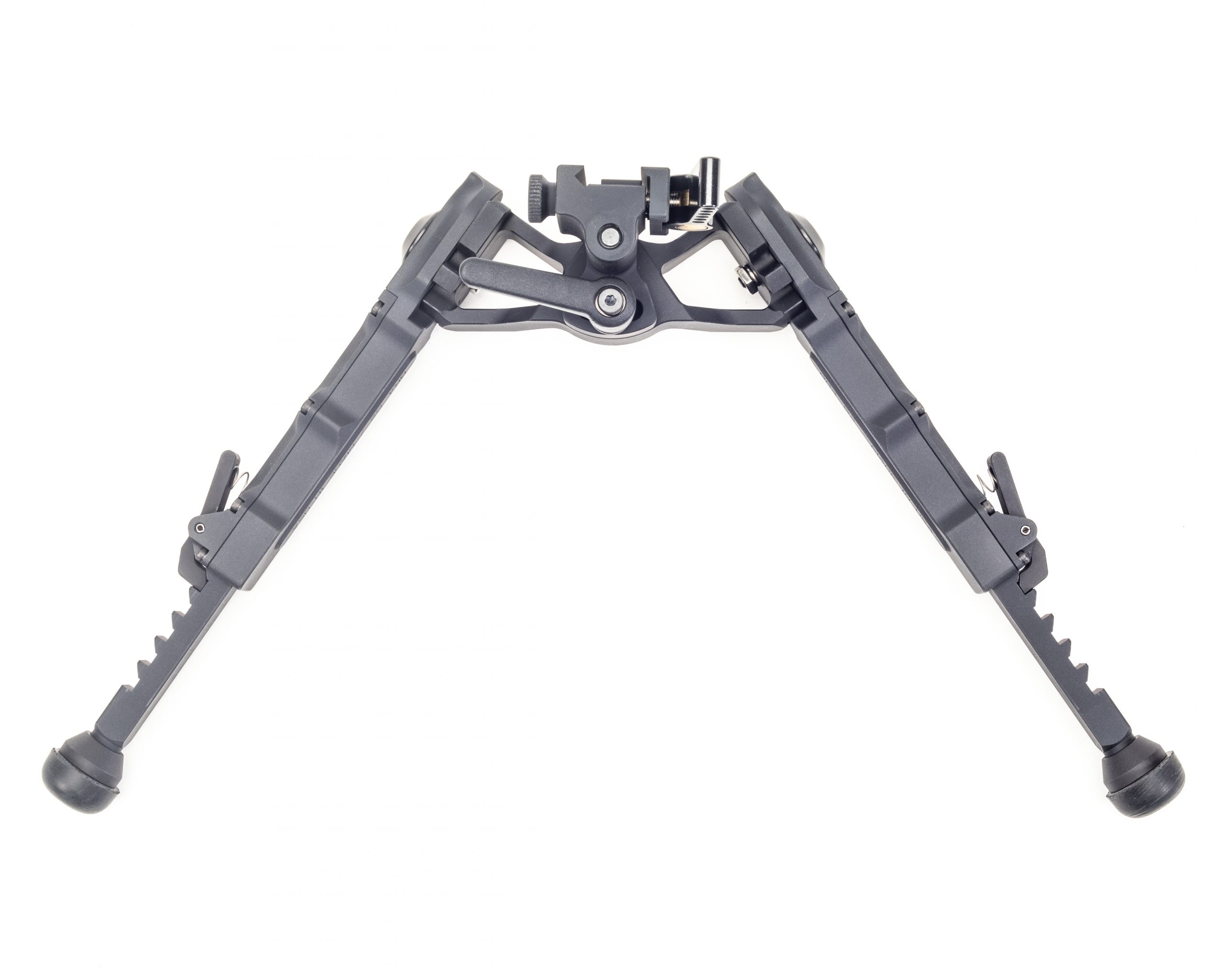 Das mit Rasten versehene Beindesign ermöglicht es dem Schützen, sich schnell auf 9 verschiedene Positionen einzustellen, mit dem Vorteil, dass jedes Bein anders positioniert werden kann. Zum Einstellen der Beinposition ziehen Sie einfach das Bein nach unten, um jedes Bein einzeln zu bewegen. Die Beinpositionen können in einer 45- oder 90-Grad-Position vorwärts oder rückwärts ausgefahren werden.