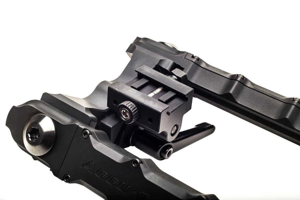 Das Zweibein lässt sich schnell und sicher an einer Picatinny-Schiene befestigen, ohne dass zusätzliche Werkzeuge erforderlich sind. Um die Beinposition zu aktivieren oder anzupassen, ziehen Sie einfach das federbelastete Bein nach unten, um jedes Bein unabhängig voneinander zu bewegen. Die Beinposition kann um 90° oder 45° nach hinten gedreht werden und ist in drei Positionen sicher arretierbar.