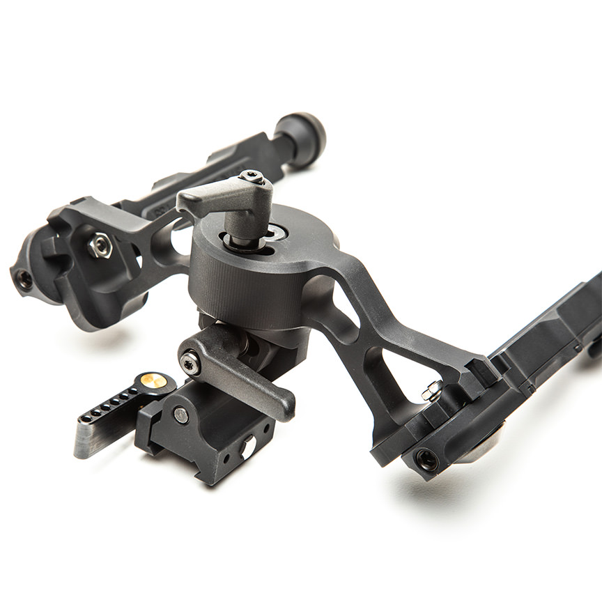 Das mit Rasten versehene Beindesign ermöglicht es dem Schützen, sich schnell auf 5 verschiedene Positionen einzustellen, mit dem Vorteil, dass jedes Bein anders positioniert werden kann. Zum Einstellen der Beinposition ziehen Sie einfach das Bein nach unten, um jedes Bein einzeln zu bewegen. Die Beinpositionen können in einer 45- oder 90-Grad-Position vorwärts oder rückwärts ausgefahren werden.
